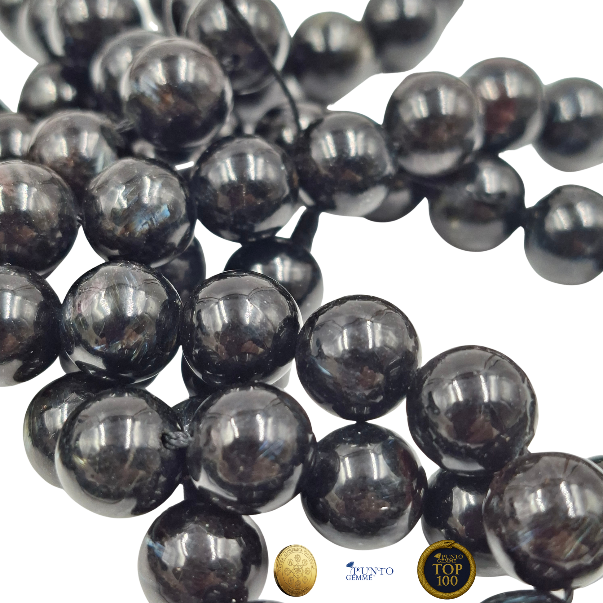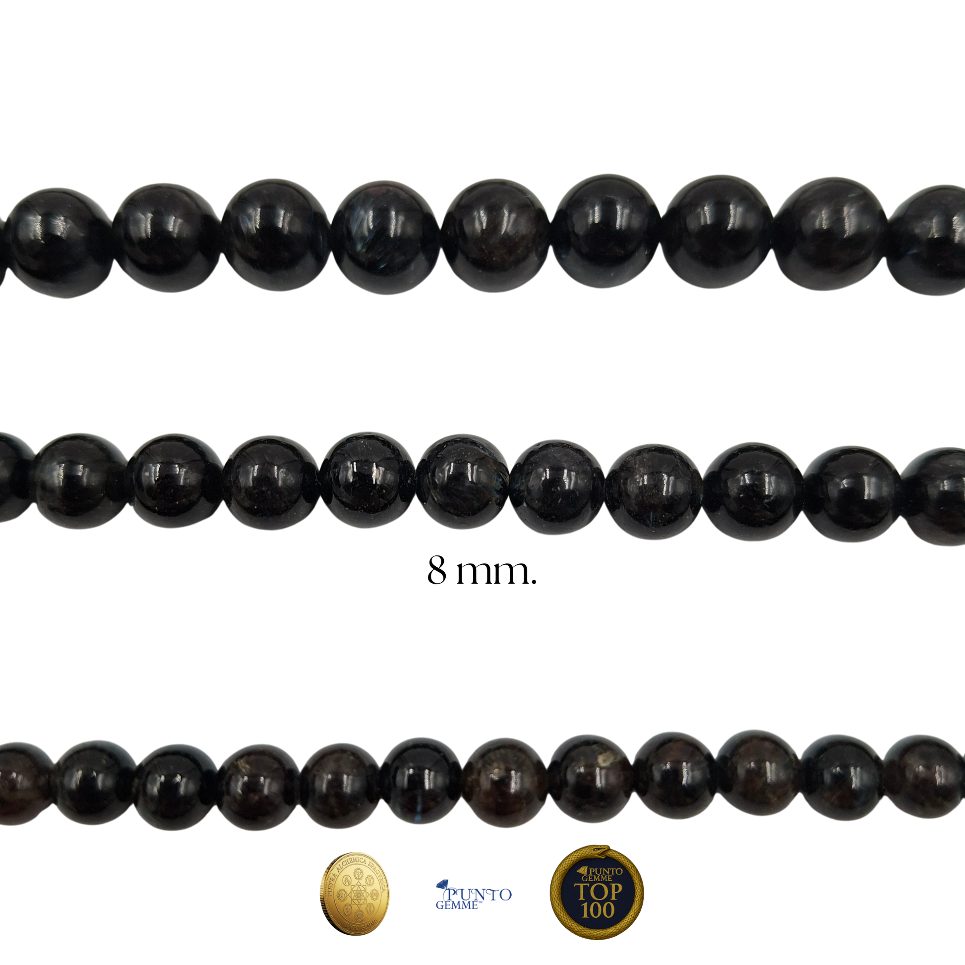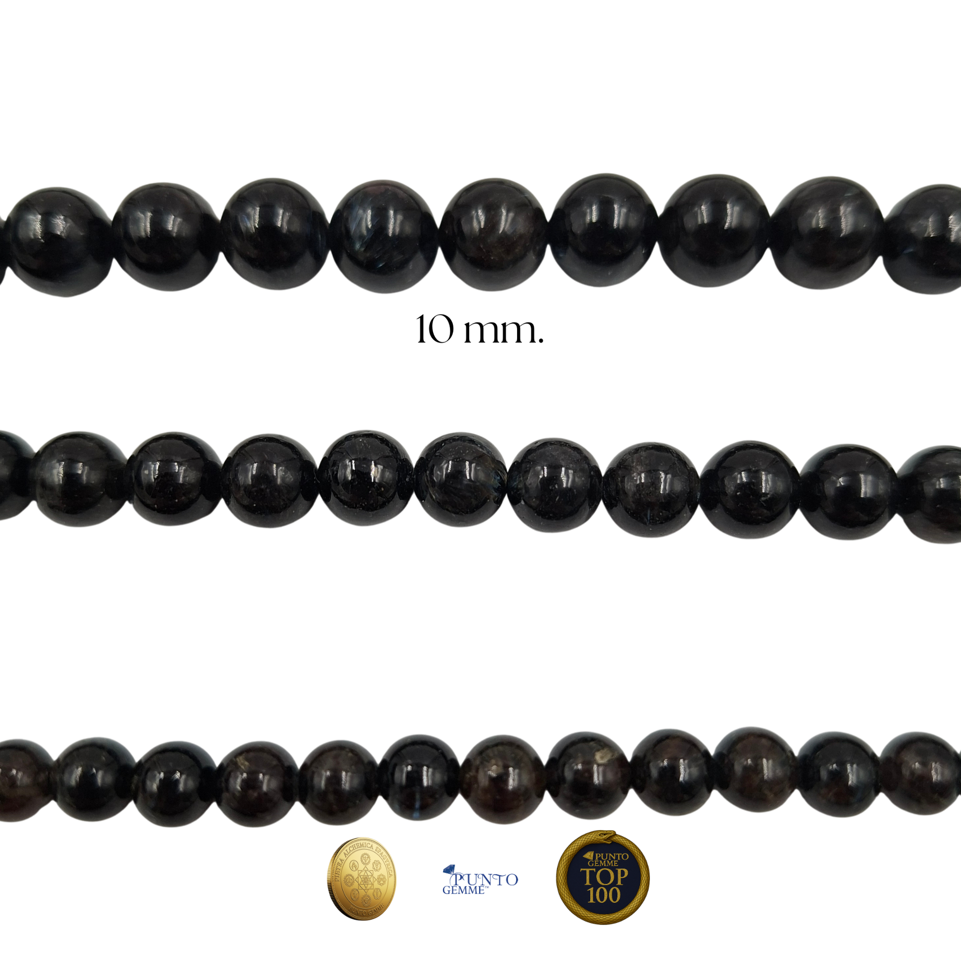 Questo eccezionale Filo di Astrofillite Naturale è classificato come Punto Gemme, TOP 100 e Pietra Aurea, offrendo la massima qualità disponibile. L'Astrofillite è un raro silicato, apprezzato non solo per le sue proprietà metafisiche, ma soprattutto per la sua bellezza unica: le perle mostrano una matrice di colore nero, marrone o grigio scuro attraversata da cristalli laminari di bronzo/oro che si irradiano in motivi stellari o a ventaglio.
