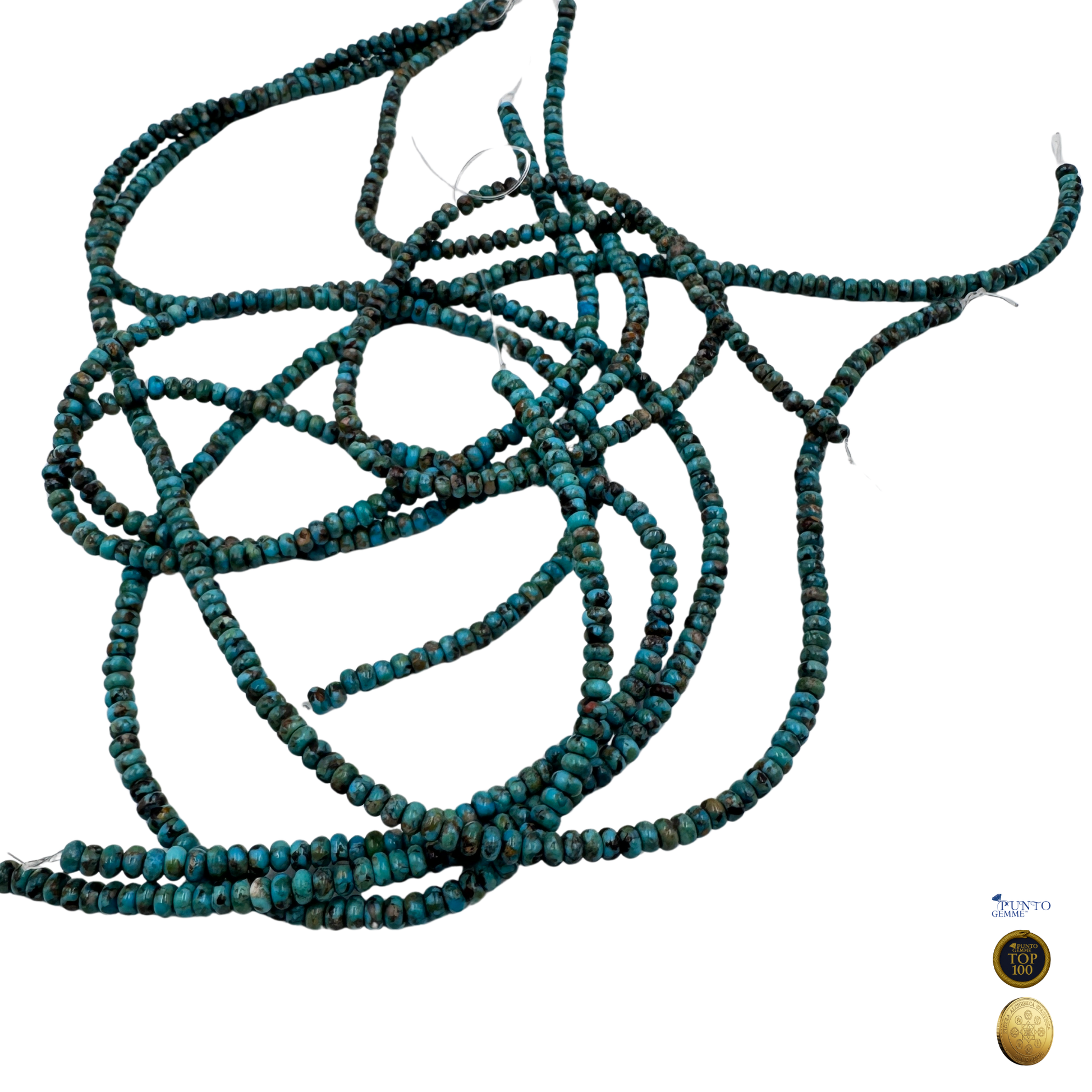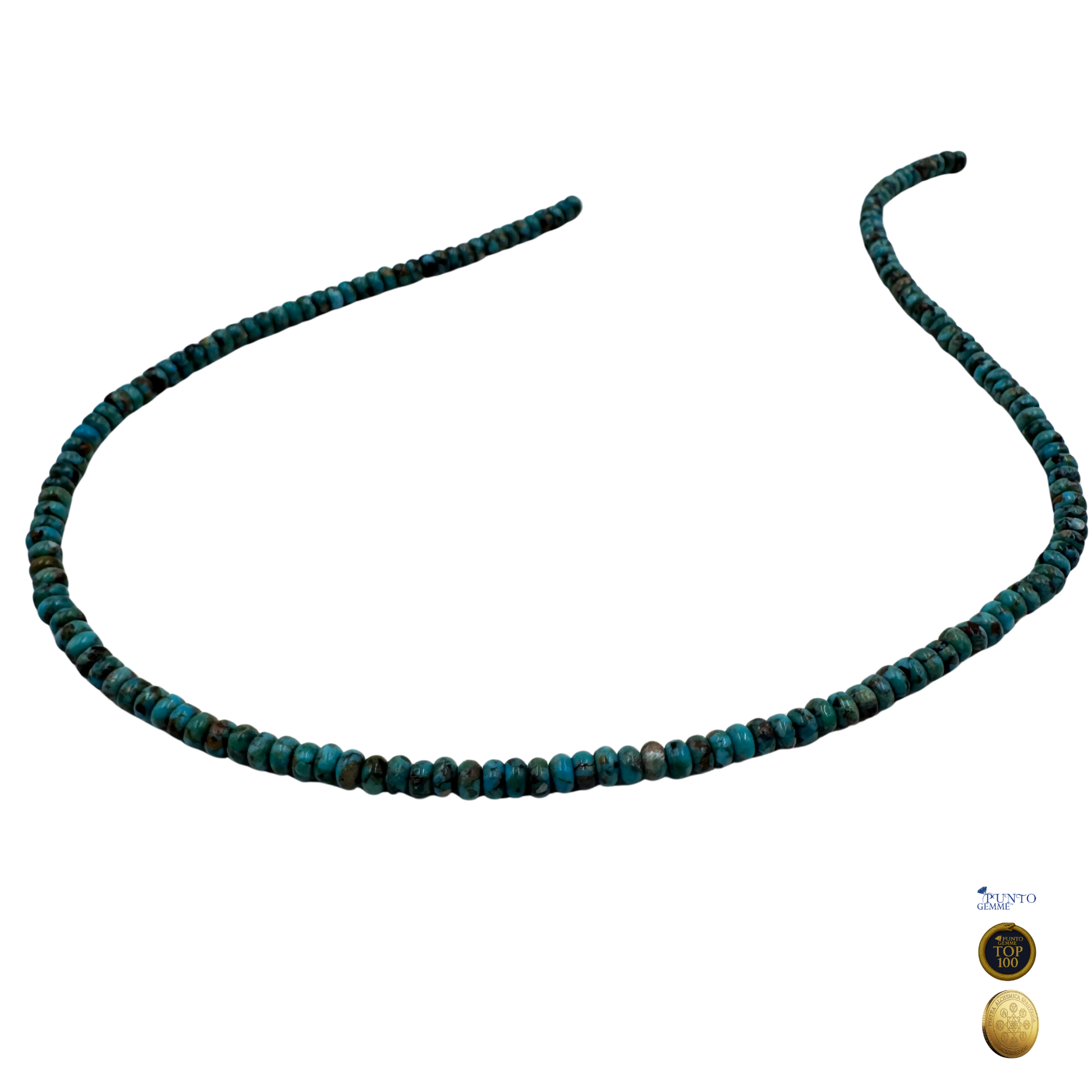 Questo delicato Filo di Turchese Naturale Genuino è composto da microperle a rondella liscia da 2x4 mm, ideali per lavori di alta precisione, distanziatori o per gioielli. Nonostante le dimensioni ridotte, il Turchese è di qualità premium (TOP 100, Pietra Aurea), garantendo il caratteristico colore che va dal blu intenso al verde-nero, con la presenza di matrice naturale.