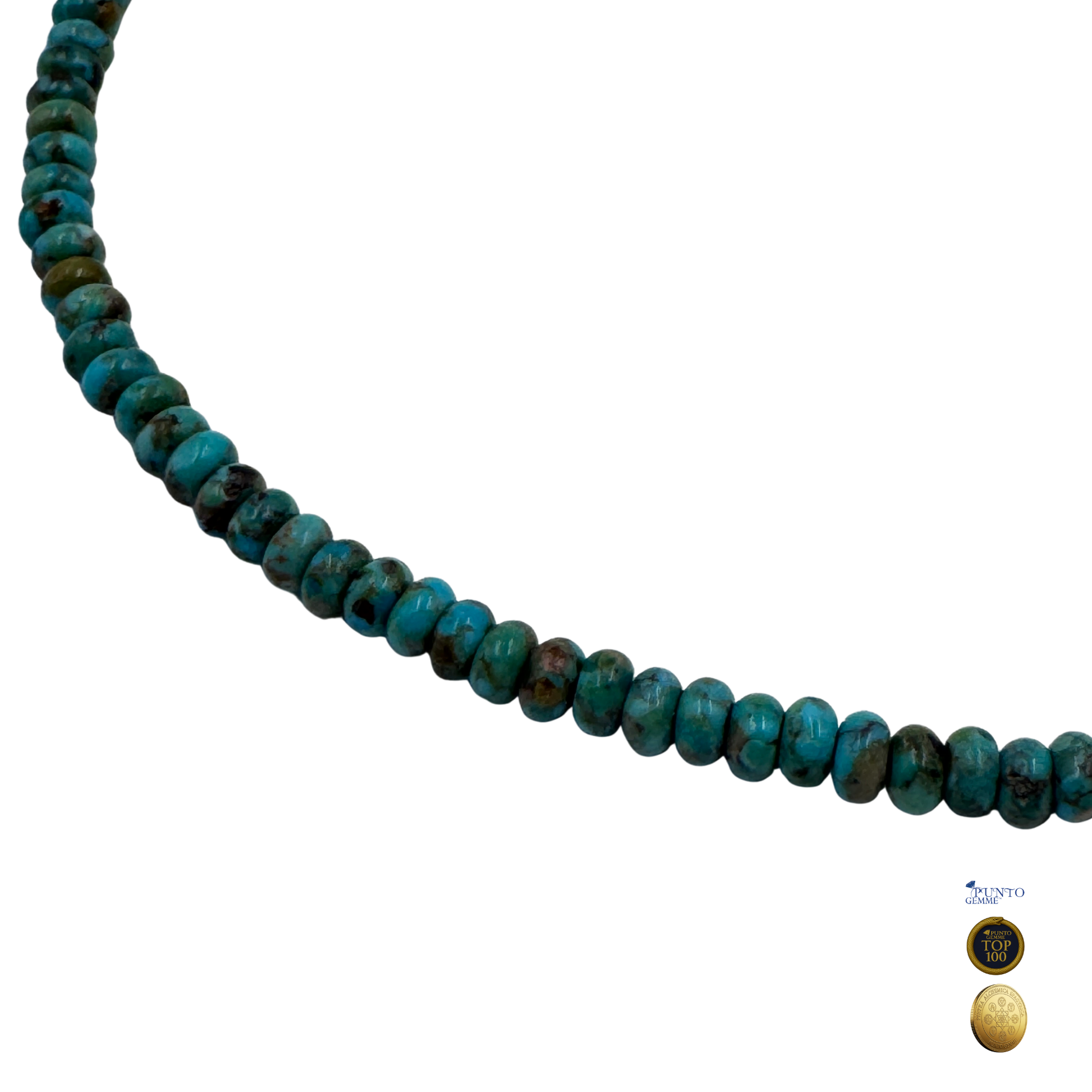 • Nome Gemmologico: Turchese (Fosfato di Rame e Alluminio idrato) • Formula Chimica: • Sistema Cristallino: Triclino • Durezza Mohs: 5 - 6 • Giacimenti Principali: Iran (Persia), Egitto, Stati Uniti (Arizona), Cina.
